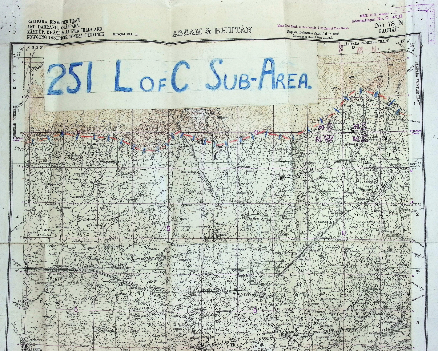 Bālipāra Frontier Tract and Darrang, Goālpāra, Kāmrūp, Khāsi & Jaintia Hills and Nowgong Districts. Tongsa Province. Surveyed 1911-13. No. 78 N Gauhāti